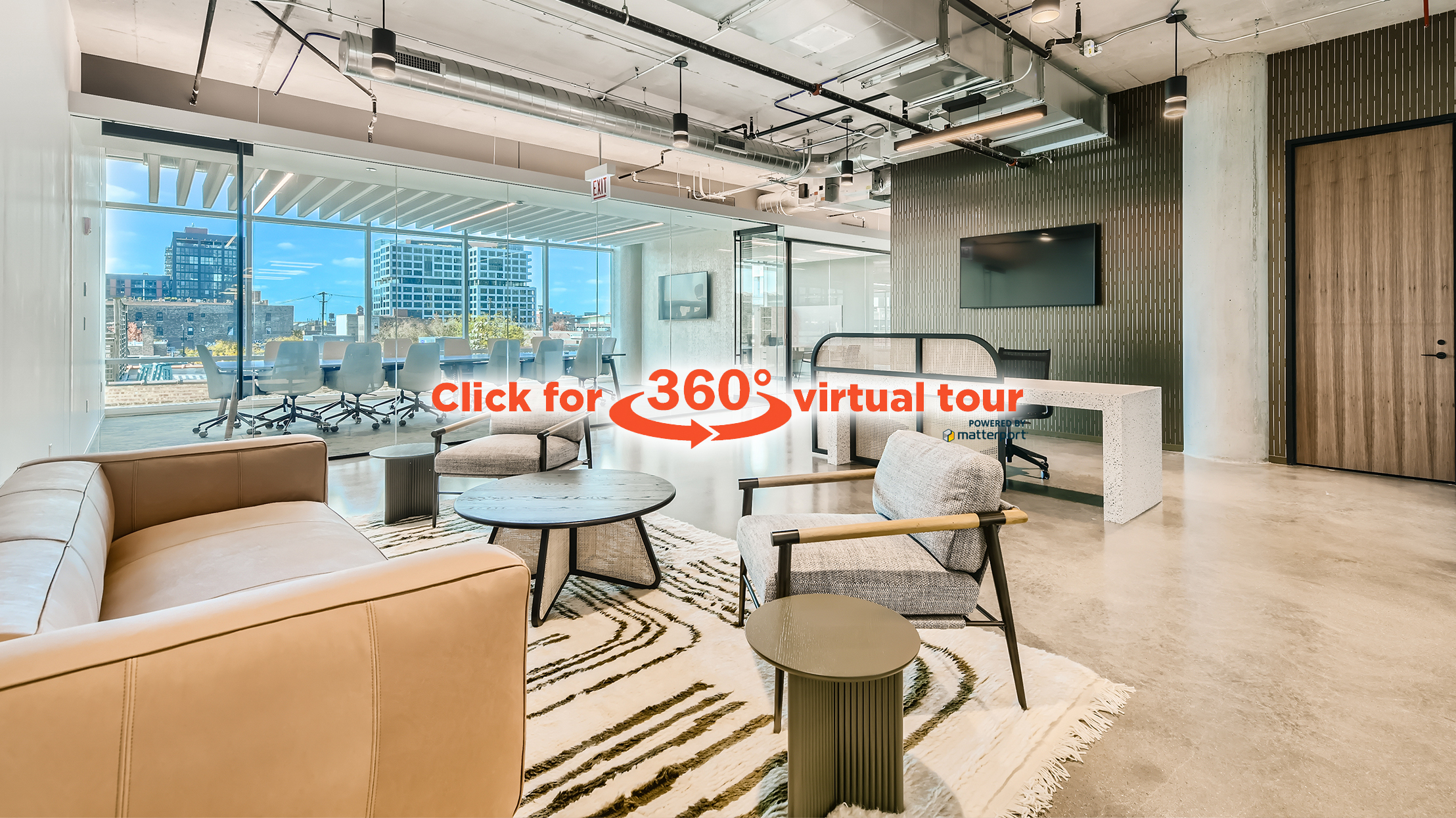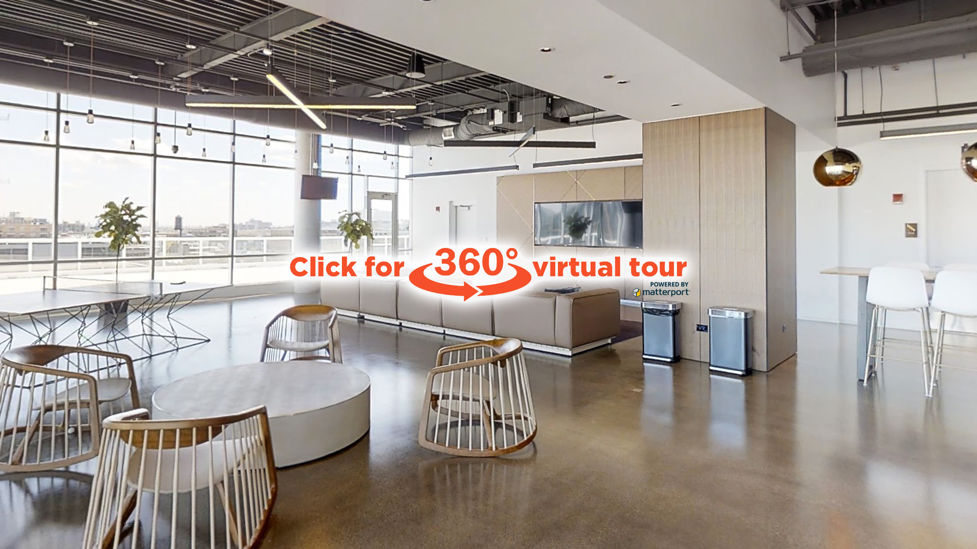 Floor-to-ceiling windows with 270-degree views of Fulton Market and the Downtown skyline